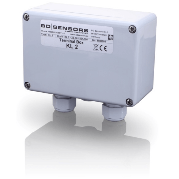 Brand: BD SensorsThe terminal box KL 2 is intended for the professional electrical connection of submersible level transmitters. Thus, it is an effective alternative to our well proven Aluminum terminal box KL 1. A pressure balance item is responsible for the compensation of atmospheric pressure variations. On the supply side a cable without ventilation tube can be used. Vertical terminal clamps enable easy connection of cables inside the case. The KL 2 with optional overvoltage protection is additionally equipped with surge arresters with a nominal discharge current of 10 kA. As a further option the KL 2 is available with a HART connection.