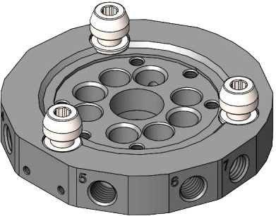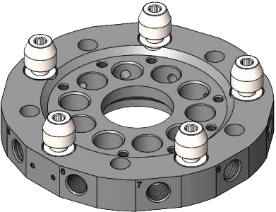 Tool-side EOAT Changer is typically used on injection molding machines to handle tools weighing up to 25 lbs. Mates with 90mm robot-side changer made by others.