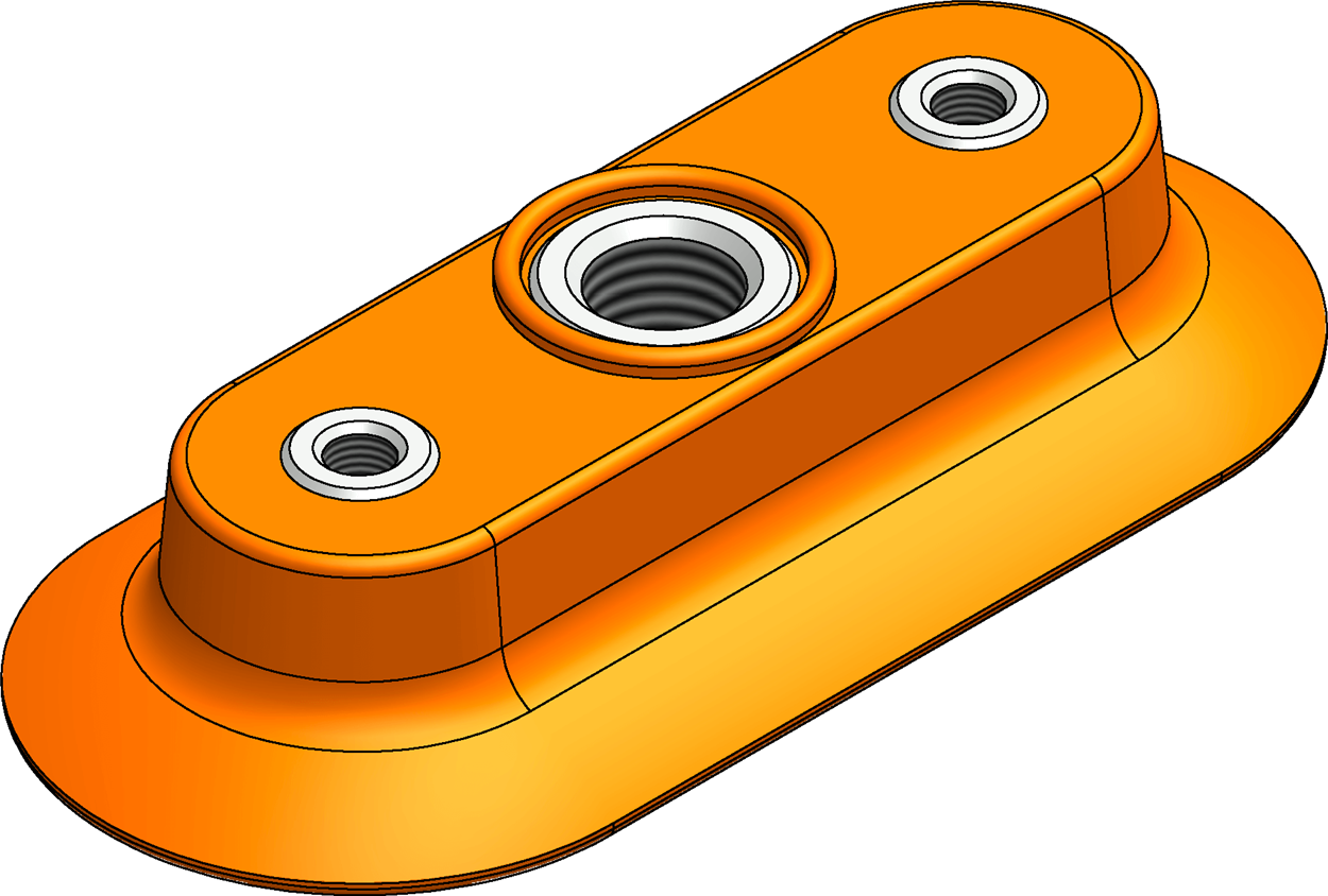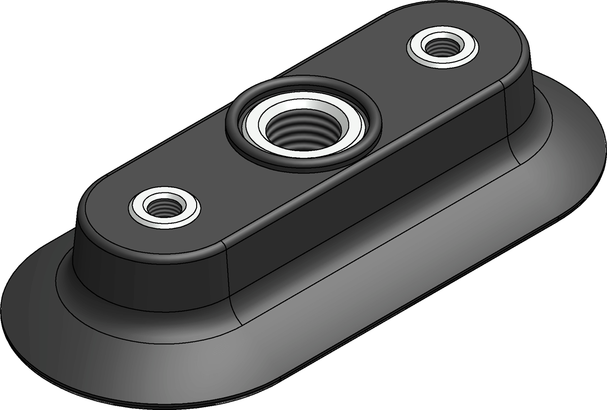 Oval flat (OF) vacuum cups have bottom cleats to maintain a larger area exposed to vacuum. Because of this, the cleats reduce the stroke by almost half. They should only be used on flat or very slightly curved surfaces.