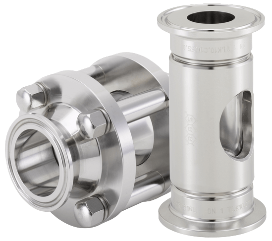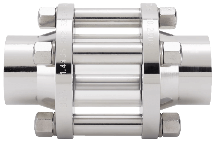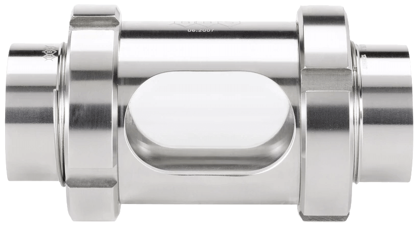 These sterile flow indicators can be installed in any position to observe liquid flow in any direction. The flow indicator is usually employed to detect either the presence or absence of solutions, or to observe fluids for turbulence, colour or clarity. They are ideal for high purity applications. The standard view indicator offers excellent process visualization whilst protecting the glass and the full view version allows a 360° process vision, this means you can observe fluid flow from any position.