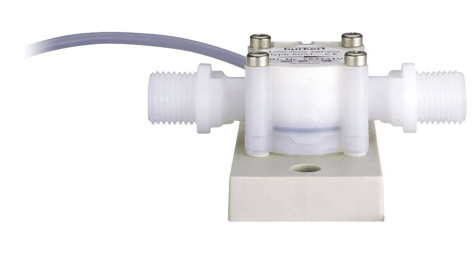 The compact low-flow sensor Type 8031 with paddle wheel and Hall sensor is specially designed for use in aggressive and solid-free liquids. The particular cost attractive measuring principle is based on a local flow velocity measurement. The sensor produces a flow proportional frequency signal which can easily be transmitted and processed.