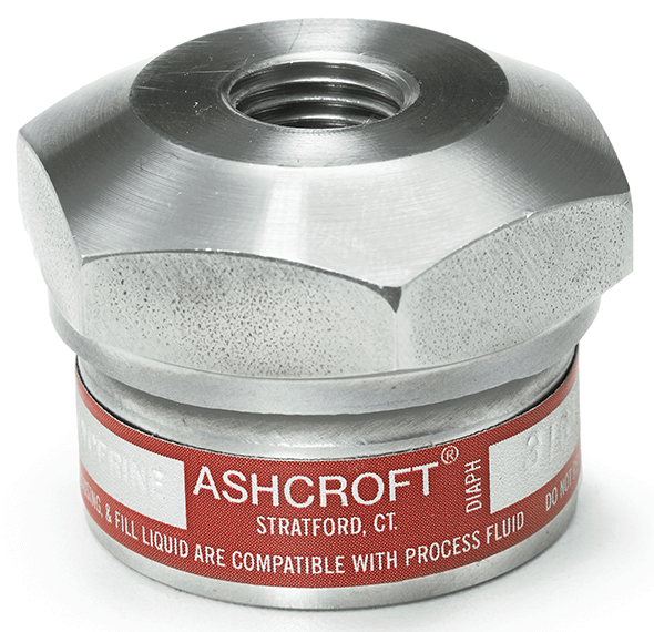 The compact size of the Ashcroft 310 and 315 mini-seal allows it to fit into space-restricted areas and is designed to protect transducers, mini-switches, and 3-1/2" or smaller dial size pressure gauges from corrosion, plugging or freeze- up.