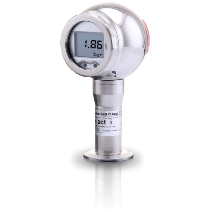 The precise pressure transmitter x|act i has been especially designed for the food / beverage, pharmaceutical industry and biotechnology and measures vacuum, gauge and absolute pressure of gases, steam and fluids psi: 0 to 580.2 (kPa: 0 to 4,000, bar: 0 to 40). Several process connections example thread or hygienic versions like Varivent, dairy pipe and Clamp with a flush welded diaphragm are available, which can be combined with a cooling element for media temperatures 0° to 300° C (0° to 572° F). The robust stainless steel globe housing has a high ingress protection IP67 and all characteristics for a residue-free and antibacterial cleaning.