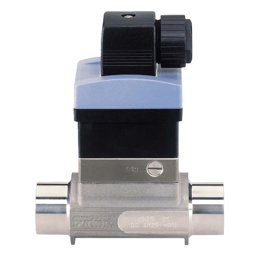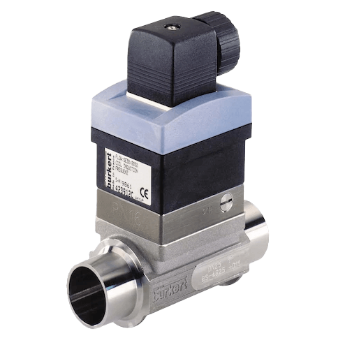 The flowmeter produces a frequency signal, proportional to the flow rate, which can easily be transmitted and processed by a Burkert transmitter/controller.