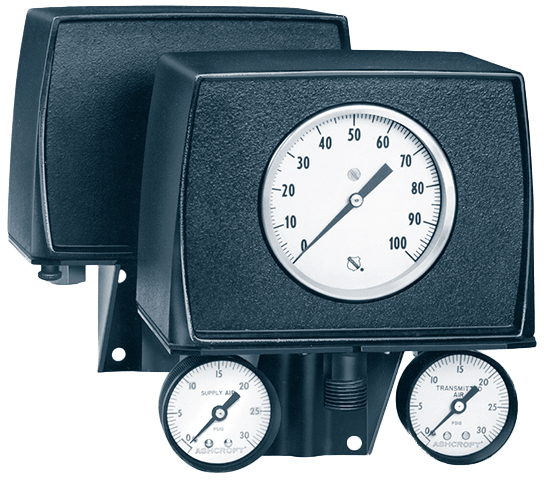 The Ashcroft transmitter is a self-nulling motion-balance instrument, using a pneumatic relay operating on the nonbleed force balance principle for converting input pressures into proportional low air pressure signals for transmittal to remote indicators or controllers.