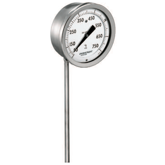 Its high temperature range capability exceeds that of most bimetallic thermometers, making it ideal for use on many applications.