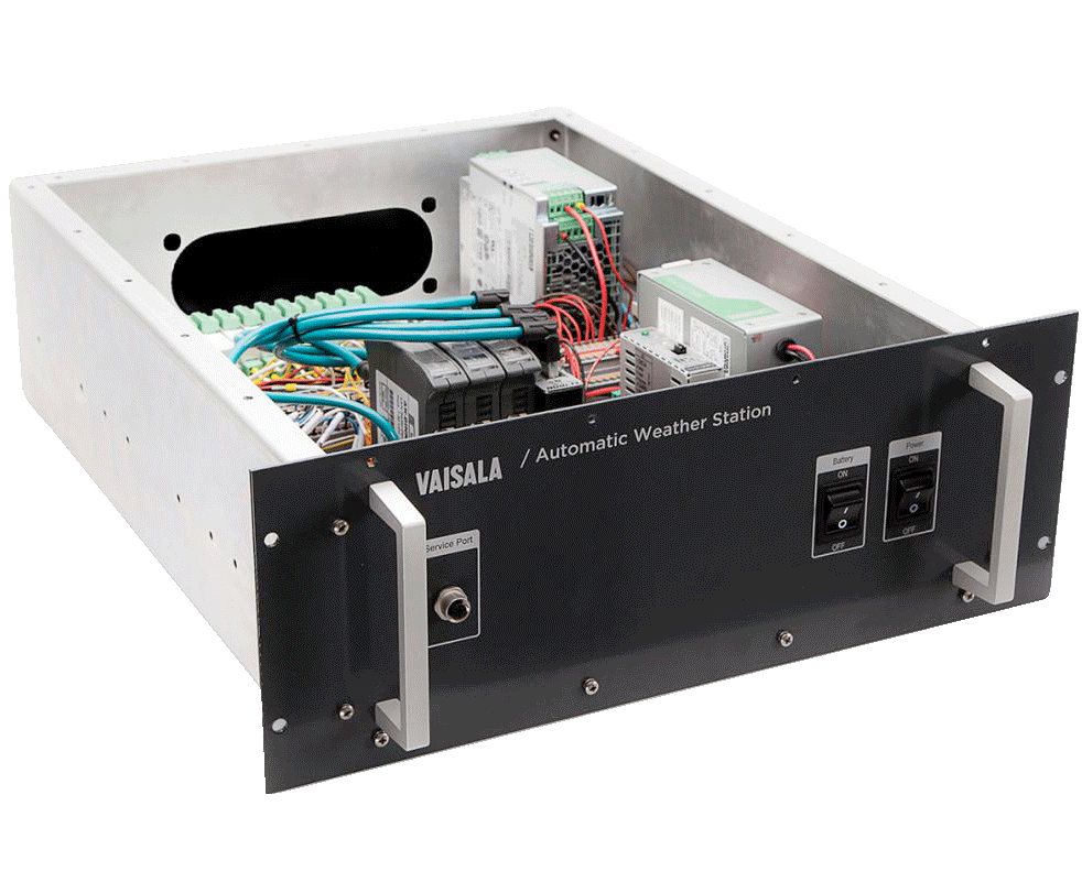 An automatic weather station designed for maritime environments such as ports, ships, and offshore platforms. The system is designed to withstand the salty and wet conditions that prevail aboard ships and platforms as well as the freeze/thaw conditions experienced in extreme-weather environments. It is also able to endure vibration and shock.