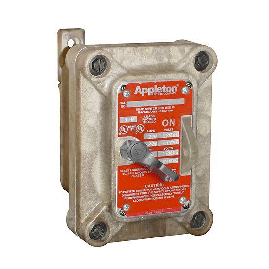 Brand: AppletonAppleton™ nonmetallic Intraground™ N1 Series non-factory sealed tumbler switches are designed to prevent arcing of enclosed switches in ignitable atmospheres during connect and disconnect operation of lighting and light power loads. They are designed for use in classified areas where ignitable vapors, gases or highly combustible dusts are present such as chemical and petrochemical plants, refineries and other process industries.